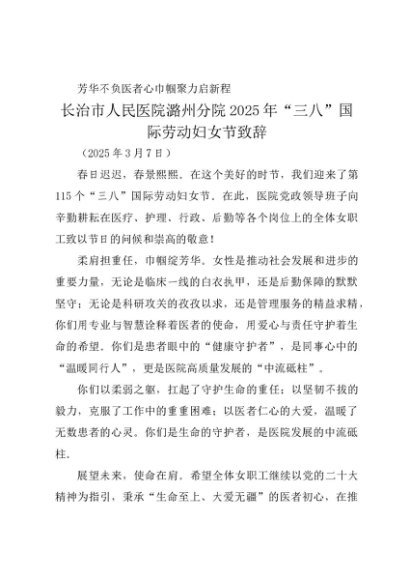 / 时令材料∣0308妇女节:20250308长治市人民医院潞州分院2025年“三八”国际劳动妇女节致辞