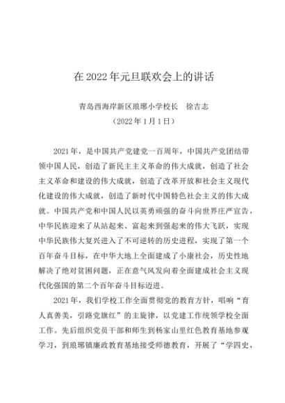 / 时令材料∣0101元旦:20220101在2022年元旦联欢会上的讲话——琅琊小学校长徐吉志