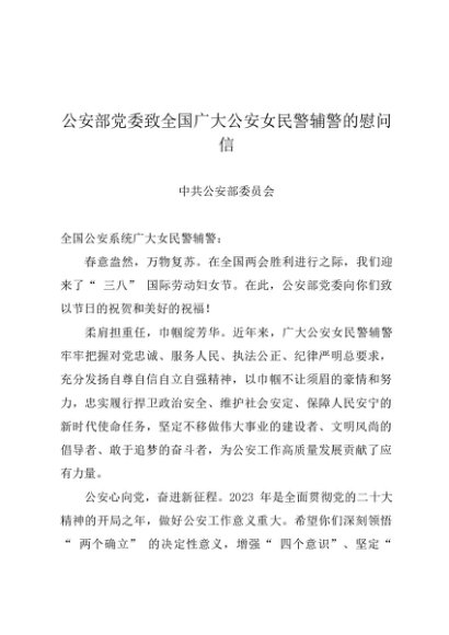 / 时令材料∣0308妇女节:20230308公安部党委致全国广大公安女民警辅警的慰问信
