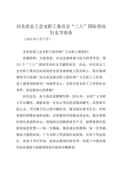 / 时令材料∣0308妇女节:20250308河北省总工会女职工委员会“三八”国际劳动妇女节寄语
