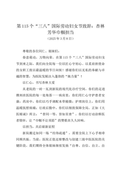 时令材料∣0308妇女节:20250308第115个“三八”国际劳动妇女节致辞:杏林芳华巾帼担当