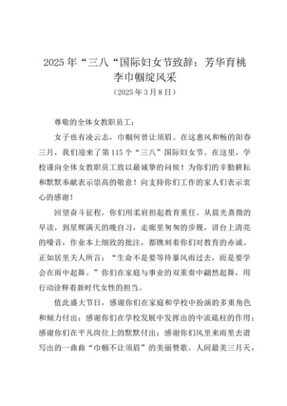 时令材料∣0308妇女节:20250308“三八“国际妇女节致辞:芳华育桃李巾帼绽风采
