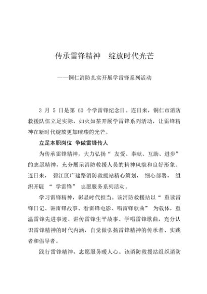 / 时令材料∣0305学雷锋:20230306传承雷锋精神 绽放时代光芒——铜仁消防扎实开展学雷锋系列活动