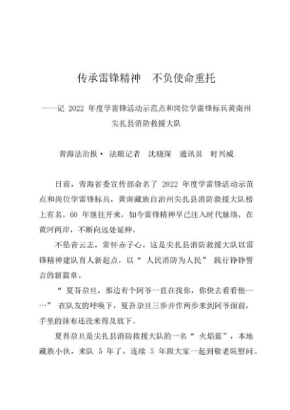 时令材料∣0305学雷锋:20230303传承雷锋精神 不负使命重托——记 2022 年度学雷锋活动示范点和岗位学雷锋标兵县消防救援大队