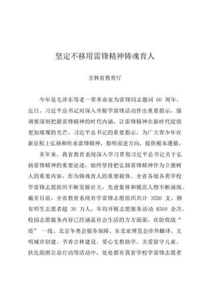 / 时令材料∣0305学雷锋:20230305坚定不移用雷锋精神铸魂育人——吉林省教育厅