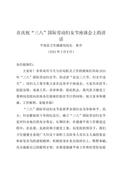 时令材料∣0308妇女节:20210308在庆祝“三八”国际劳动妇女节座谈会上的讲话——平南县卫生健康局局长 黄升