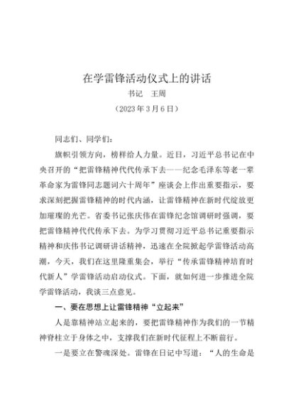 / 时令材料∣0305学雷锋:20230306在学雷锋活动仪式上的讲话——高校