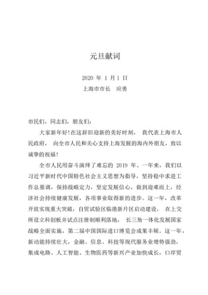 时令材料∣0101元旦:20200101元旦献词——上海市市长 应勇