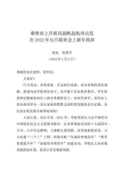 / 时令材料∣0101元旦:20220101在元旦联欢会上新年致辞——职业技术校长张爱学