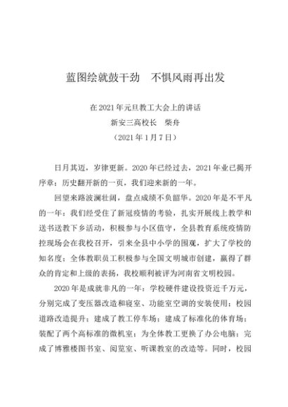 / 时令材料∣0101元旦:20210107在元旦教工大会上的讲话——新安三高校长 柴舟
