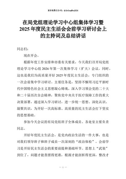 - 【七哥公文】2025年:在XX县委理论学习中心组集中研讨会上的讲话+更多免费公文+VX:QiGeGongWen2024 12-04