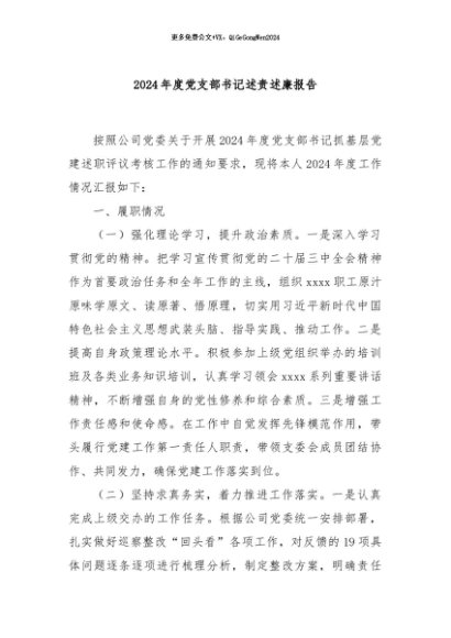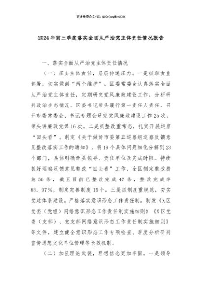- 【七哥公文】2024年:2024年XX党委(党工委、党组)落实全面从严治党主体责任工作情况报告+更多免费公文+VX:QiGeGongWen2024 09-10