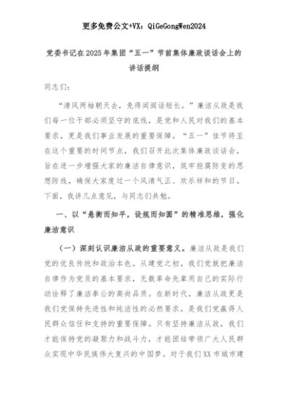 - 【七哥公文】2025年:五一劳动节演讲稿+更多免费公文+VX:QiGeGongWen2024+更多免费公文+VX:QiGeGongWen2024 09-10