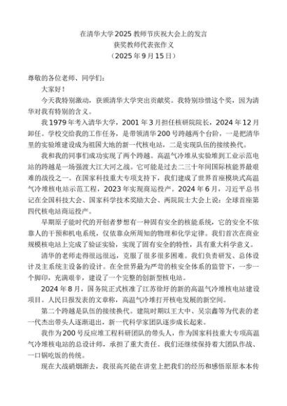 / 获奖教师代表张作义:在清华大学2025教师节庆祝大会上的发言