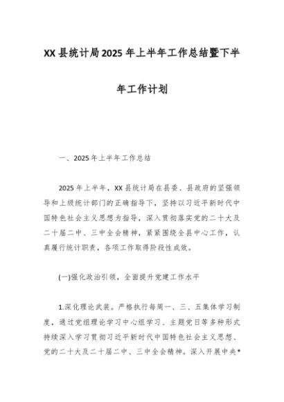/ XX县统计局2025年上半年工作总结暨下半年工作计划