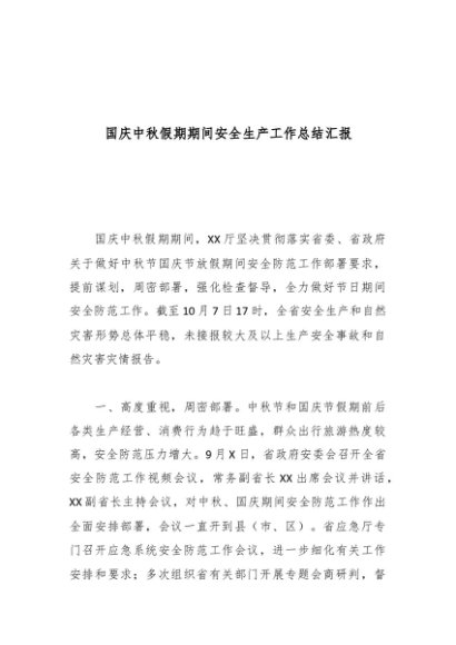 / 国庆中秋假期期间安全生产工作总结汇报