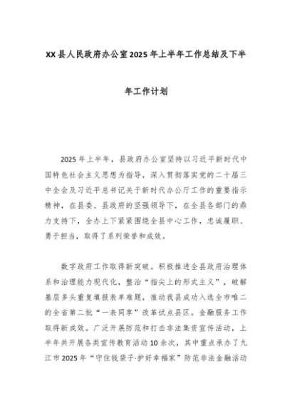 / XX县人民政府办公室2025年上半年工作总结及下半年工作计划