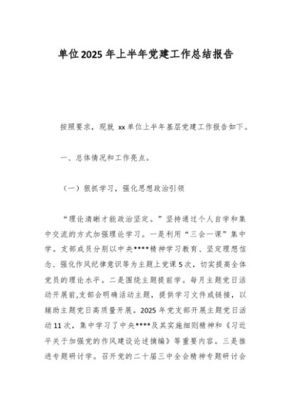 / 单位2025年上半年党建工作总结报告