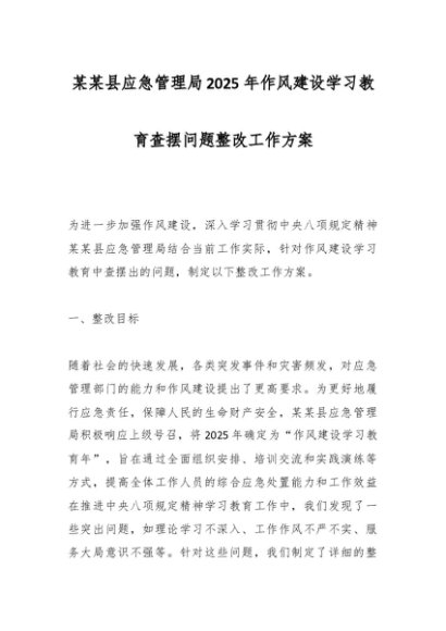 / 某某县应急管理局2025年作风建设学习教育查摆问题整改工作方案