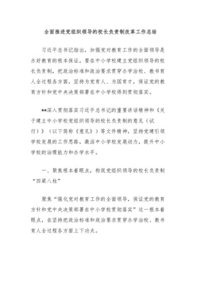 / 全面推进党组织领导的校长负责制改革工作总结