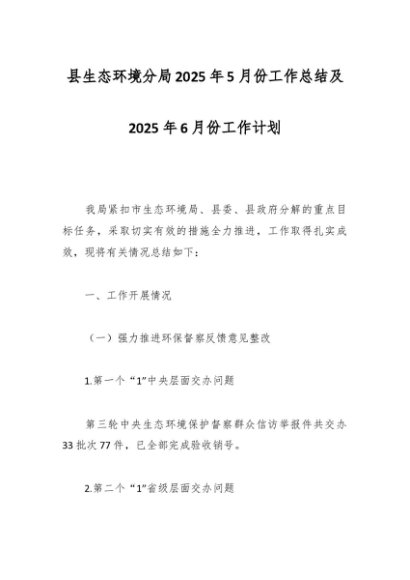 / 县生态环境分局2025年5月份工作总结及2025年6月份工作计划