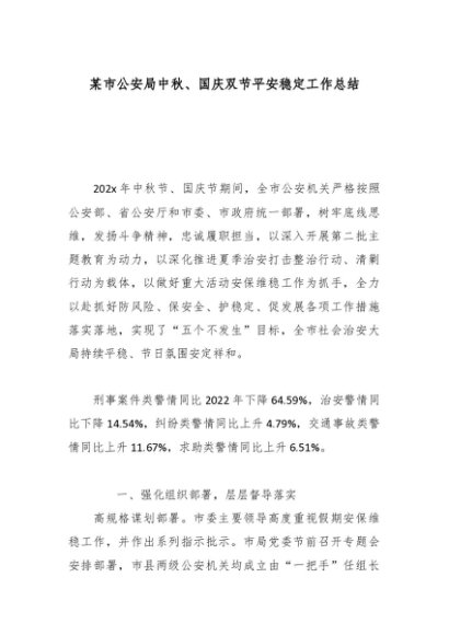 / 某市公安局中秋、国庆双节平安稳定工作总结