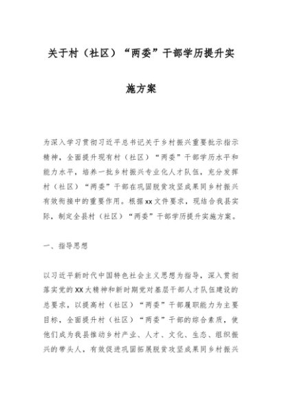 / 关于村(社区)“两委”干部学历提升实施方案