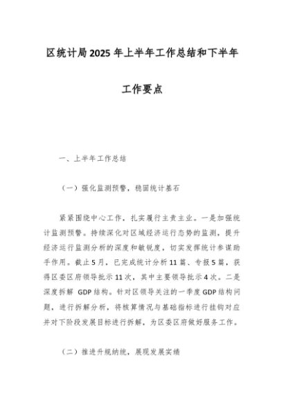 / 区统计局2025年上半年工作总结和下半年工作要点