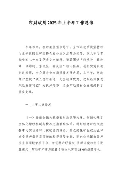 / 市财政局2025年上半年工作总结