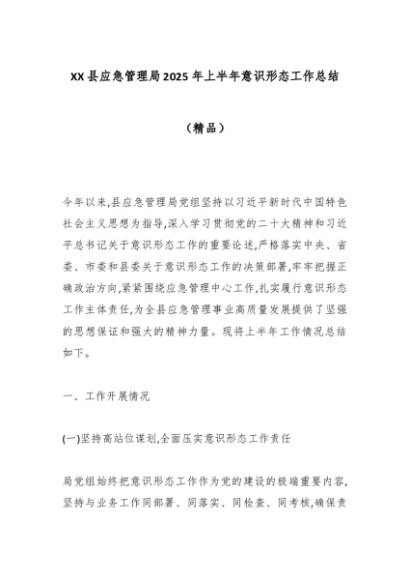 / XX县应急管理局2025年上半年意识形态工作总结(精品)