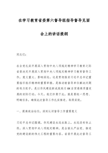 / 在学习教育省委第六督导组指导督导见面会上的讲话提纲