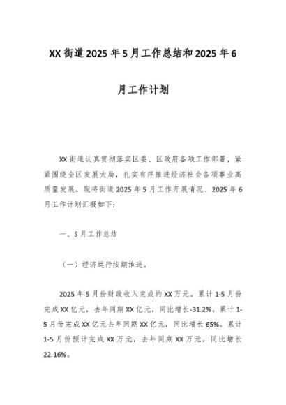 / XX街道2025年5月工作总结和2025年6月工作计划