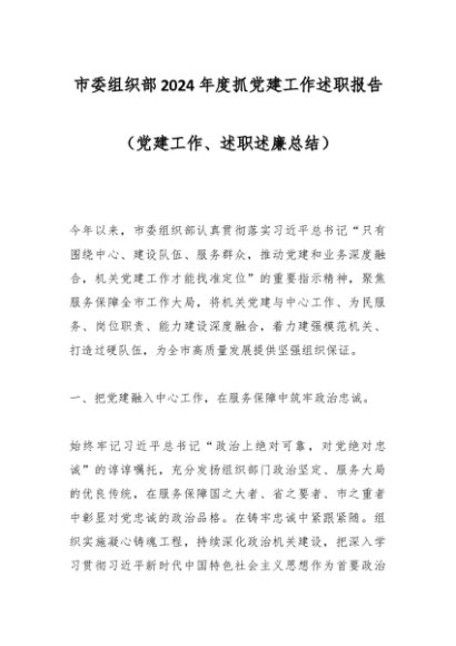 / 市委组织部2024年度抓党建工作述职报告(党建工作、述职述廉总结)