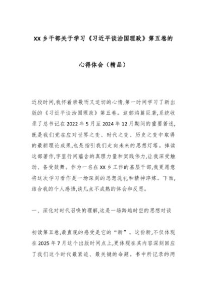 / XX乡干部关于学习《总书记谈治国理政》第五卷的心得体会(精品)