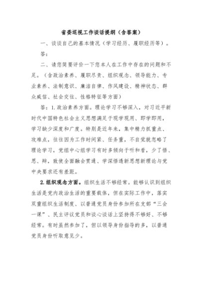 / 省委巡视工作谈话提纲(含答案)