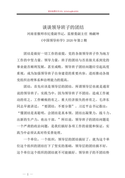 / 谈谈领导班子的团结——河南省偃师市纪委副书记,监察委副主任 杨献坤