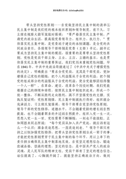 带头坚持党性原则——自觉做坚持民主集中制的表率①