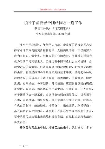 / 江泽民:领导干部要善于团结同志一道工作