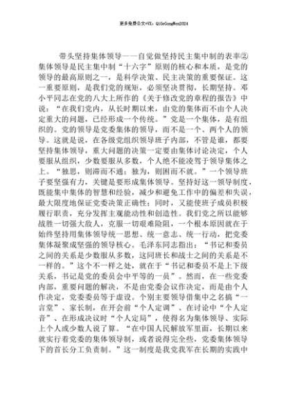 带头坚持集体领导——自觉做坚持民主集中制的表率②