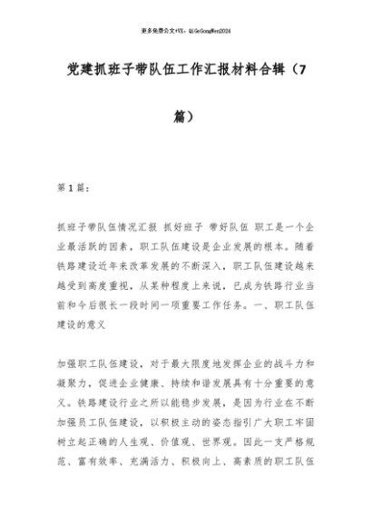 / (7篇)党建抓班子带队伍工作汇报材料合辑