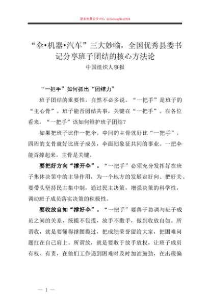 / “伞•机器•汽车”三大妙喻,全国优秀县委书记分享班子团结的核心方法论