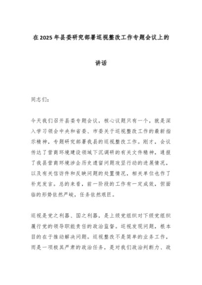 / 在2025年县委研究部署巡视整改工作专题会议上的讲话