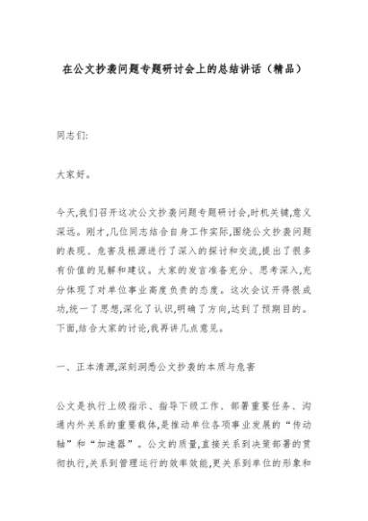 / 在公文抄袭问题专题研讨会上的总结讲话(精品)