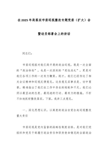 / 在2025年局落实市委巡视整改专题党委(扩大)会暨动员部署会上的讲话
