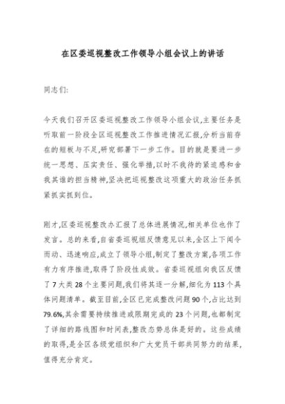 / 在区委巡视整改工作领导小组会议上的讲话