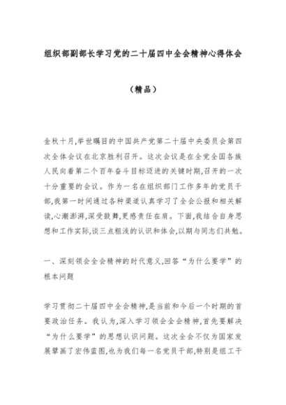 / 组织部副部长学习党的二十届四中全会精神心得体会(精品)