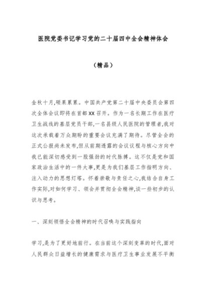 / 医院党委书记学习党的二十届四中全会精神体会(精品)