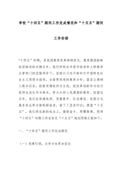 / 学校“十四五”期间工作完成情况和“十五五”期间工作安排