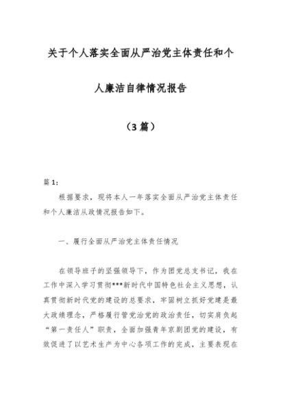 (3篇)关于个人落实全面从严治党主体责任和个人廉洁自律情况报告