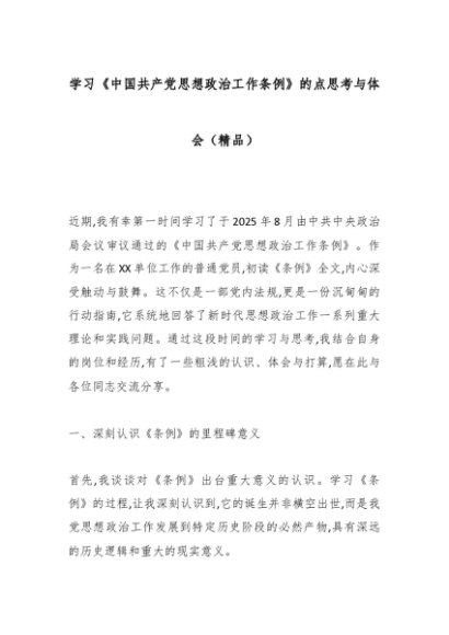 / 学习《中国共产党思想政治工作条例》的点思考与体会(精品)
